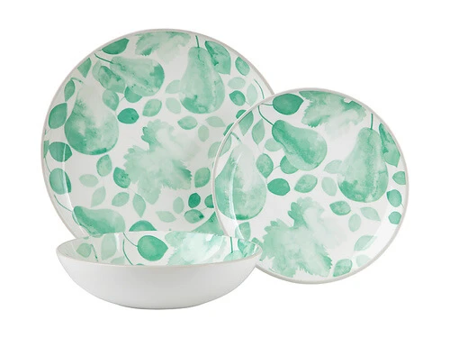 This Giverny 12-piece dinner set in green is designed to encourage long leisurely dining experiences. Made from crisp white porcelain with a gorgeous watercolour design, it includes a versatile selection of dinner plates, side plates and bowls that easily mix and match with the rest of the Giverny collection for a beautifully layered table. Classically stylish with a fresh, summery feel, this design makes the perfect addition to a contemporary home.