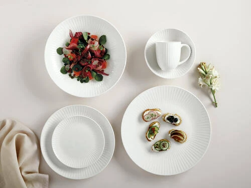 Our new Radiance entertainer’s sets combine a classic dinner set with two versatile servingware pieces – everything you need for your next dinner party. Each piece in the set features a gently rippled design and is made from high quality porcelain.