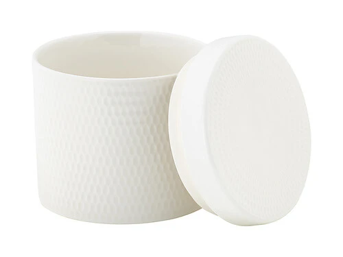 - Cylindrical shape with matching lid and elegant Diamonds textured surface